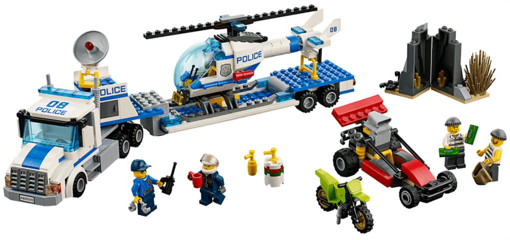 A gonosztevők azon vannak, hogy elrejtsék a lopott holmit a titkos, kinyitható sziklájuk rejtekhelyén, de előbb el kell kapni őket. Kergesd a gonosztevőket a nagy teherbírású Helikopter szállítóval, ha pedig letérnek az útról terepmotorjukon vagy erős homokfutójukon, pattanj be a pehelykönnyű helikopterbe, pörgesd fel a rotort és folytasd az üldözést a levegőben. Keresd meg őket, ejtsd foglyul a gonosztevőket és szerezd vissza az értékeket, mielőtt túl késő lenne.