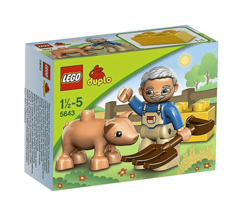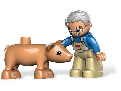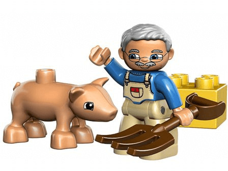 Lego kismalac egy lego farmon!Mindig szép fényesen süt a nap Lego faromonItt a nagyapa hogy takarmányt adjon a kismalacnak.Segítségül itt egy szénabála lego kockából.