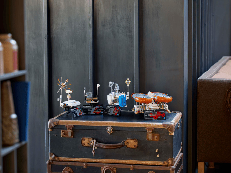 Nyisd ki a NASA űrjárót, pakold be a felszerelést, majd próbáld ki a kormányzást és a felfüggesztést, miközben elképzeled, hogy milyen lenne a Holdon sétálni és mintákat gyűjteni. Nézd meg a hűtő-fűtő elemekkel ellátott akkumulátormodellt és az antennás tévékamerát. Fedezd fel a kommunikációs egységet, majd próbálj ki olyan eszközöket, mint az ásó és a fúró, hogy LEGO holdkőelemeket találj. A szett része a gravimeterrel végzett kísérlet, amelyet az Apollo-17 hajtott végre. Akészlet emléket állít a Big Muley-nek is - a legnagyobb holdkőminta, amelyet az Apollo-program keretében hoztak a Földre.