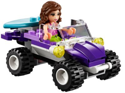 Élvezd a nyarat Heartlake City-ben Olivia homokfutójával! Csomagold be a szörfdeszkáját és vágj át a homokdűnéken a tengerpartra! A csavarkulccsal igazítsd meg a homokfutót és indulj egyenesen a legnagyobb dűnék felé! Egy fárasztó, hosszú hullámlovaglás után indulj a tengerparti elárusítóhelyhez, ahol narancslét vagy jégkását fogyasztva pihenj a pálmafák leveleinek árnyékában.