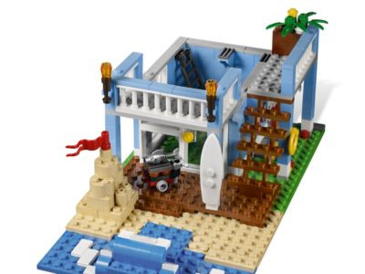 Építs 3 az 1-ben álomlakot a tengerparton! Élvezd az életet a tengernél, a saját magad által épített 3 az 1ben tengerparti nyaralóban. Menj szörfözni, használd a kültéri tusolót, azután sütögess a kerti grillezőben, és mindezt a parton. Ülj ki a teraszra és nézd ahogy a sirályok repkednek az égen. Etesd meg őket, mert ők is éhesek! Ebben a tengerparti nyaralóban nyithatóak az ajtók, levehető a tető, hogy belülről is lehessen játszani. Ha kész vagy az egyik épülettel, és már kijátszottad magad, további 2 épületet is építhetsz ebből a készletből.