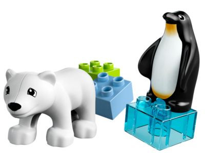 Eljött a játék ideje a sarkköri állatok bemutatóján. Vidd ki a szabadba a kis jegesmedvebocsot és a pingvint egy kis jeges játékra! Játssz az áttetsző jégkék és szürkekő színű LEGO® DUPLO® elemekkel! Kezdd a LEGO építési élmények sorozatát a barátságos DUPLO állatokkal!